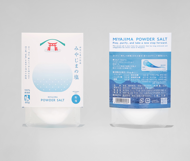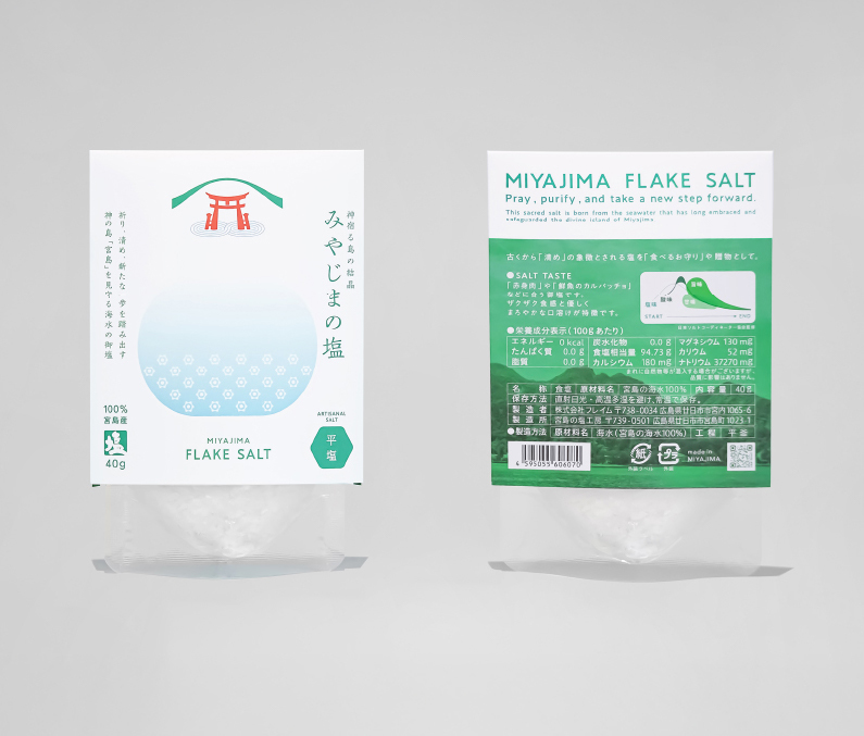 島全体が御神体と云われる神の島「宮島」の海水のみを使用して丁寧につくりあげた100%宮島産の『みやじまの塩』。