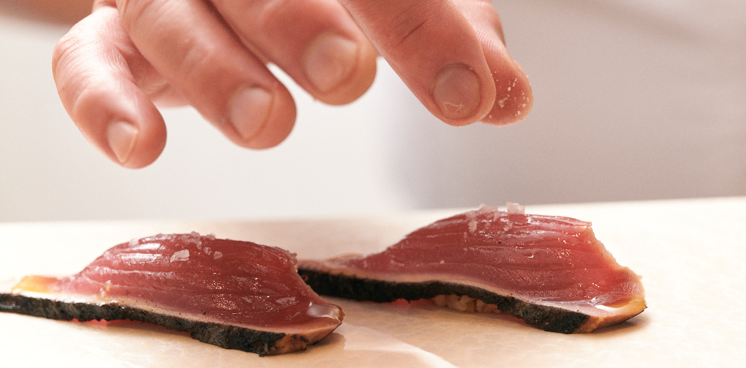 - 厳選された飲食店のみで食べられる「いつくし御塩」は、すこし苦味があって塩に含まれる味の数も多いので、どんな食材にも合わせやすい塩です。特にカツオとは相性がよさそうですね。