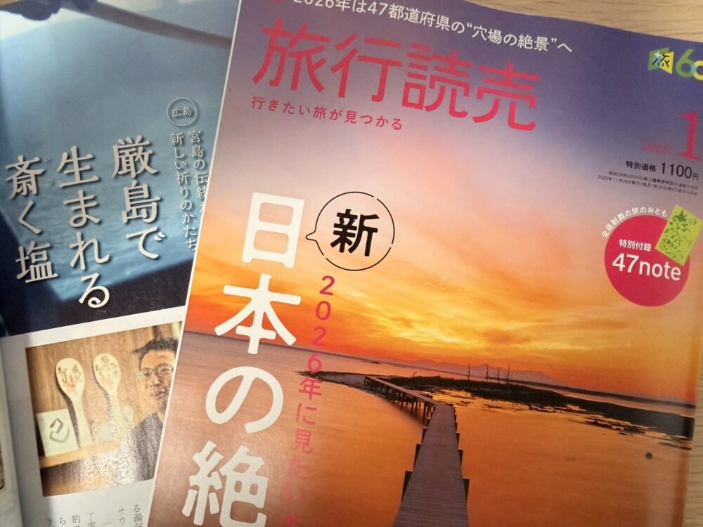 この度、雑誌『旅行読売』の2026年1月号に掲載されましたのでお知らせいたします。