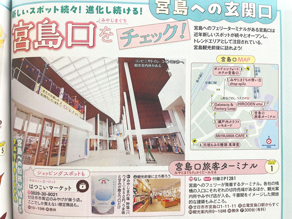 『みやじまの塩』の商品取扱がある、はつこいマーケット(宮島口旅客ターミナル内)の紹介もありますので、ぜひご覧ください。